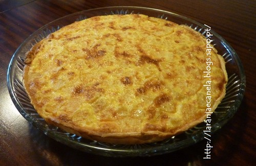 Numa taça, bata muito bem as gemas e as claras, o leite, o açúcar, a canela em pó e a farinha de trigo. Junte a maçã desfeita que reservou. Misture bem. De seguida, deite esta mistura na tarteira forrada com a massa folhada (pique a massa com um garfo) e leve a cozer no forno pré-aquecido a 180º. Deixe crescer e tomar a cor dourada (35 a 40 minutos). Retire do forno quando estiver cozida (pode verificar um palito). Desenforme no prato de serviço e deixe arrefecer.